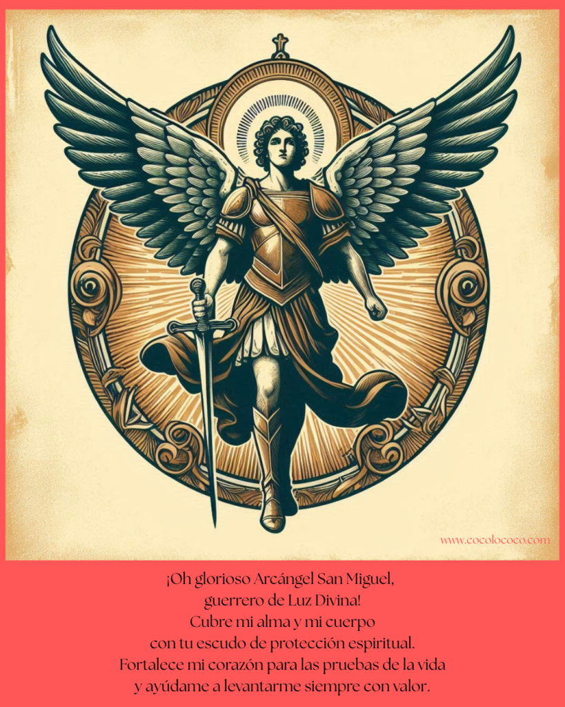 Podemos pedirle amparo cuando sentimos miedo, incertidumbre o cuando las cargas de la vida parecen demasiado pesadas. Líder de los ejércitos celestiales, guardián de la justicia y defensor de la verdad, su presencia nos recuerda que siempre existen fuerza y protección divinas a nuestro alcance.